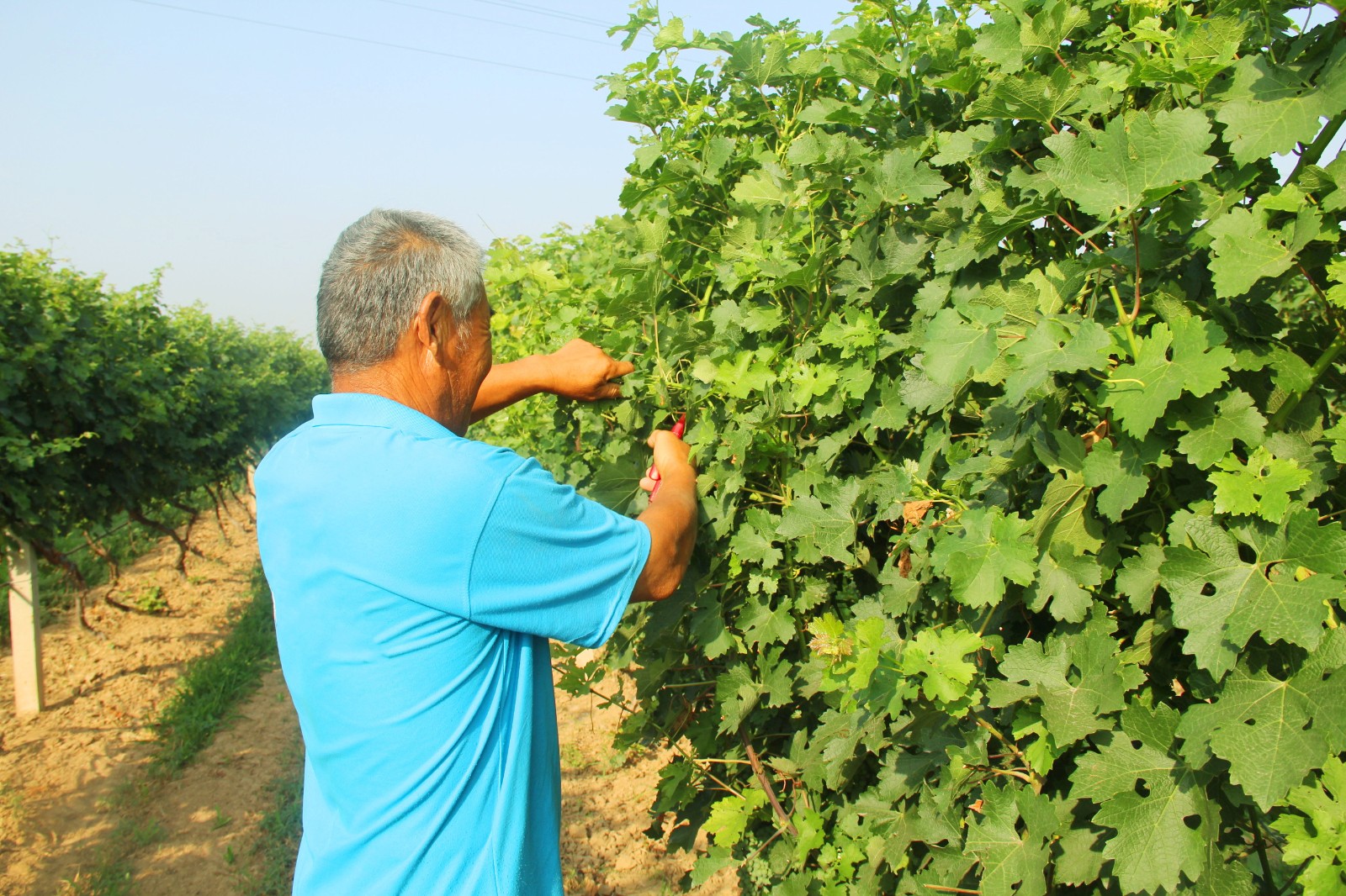 小暑正值初伏前后,空氣濕度逐漸加大,天氣由干熱轉為悶熱。七月,格瑞特葡萄種植園釀酒葡萄果實正在猛長中,辛勤的工人們正在進行剪枝、鋤草工作,這樣有利于葡萄生長所需的通風透光,也非常有利于莊園規范化、標準化和美觀化。