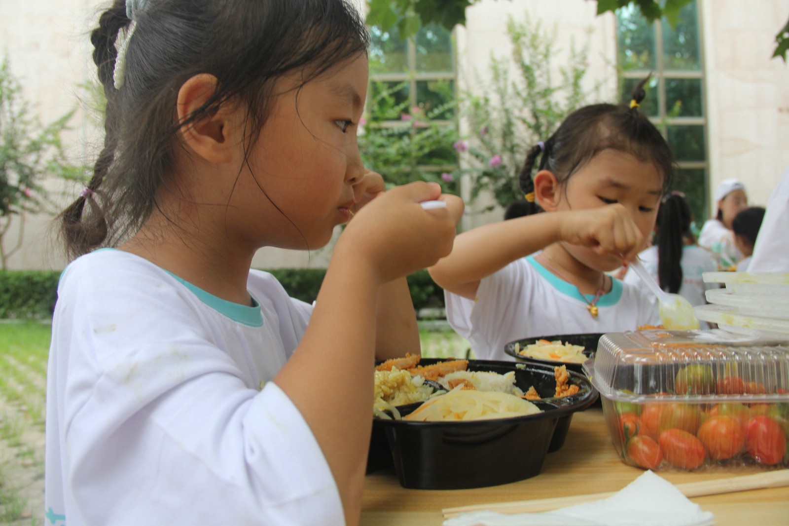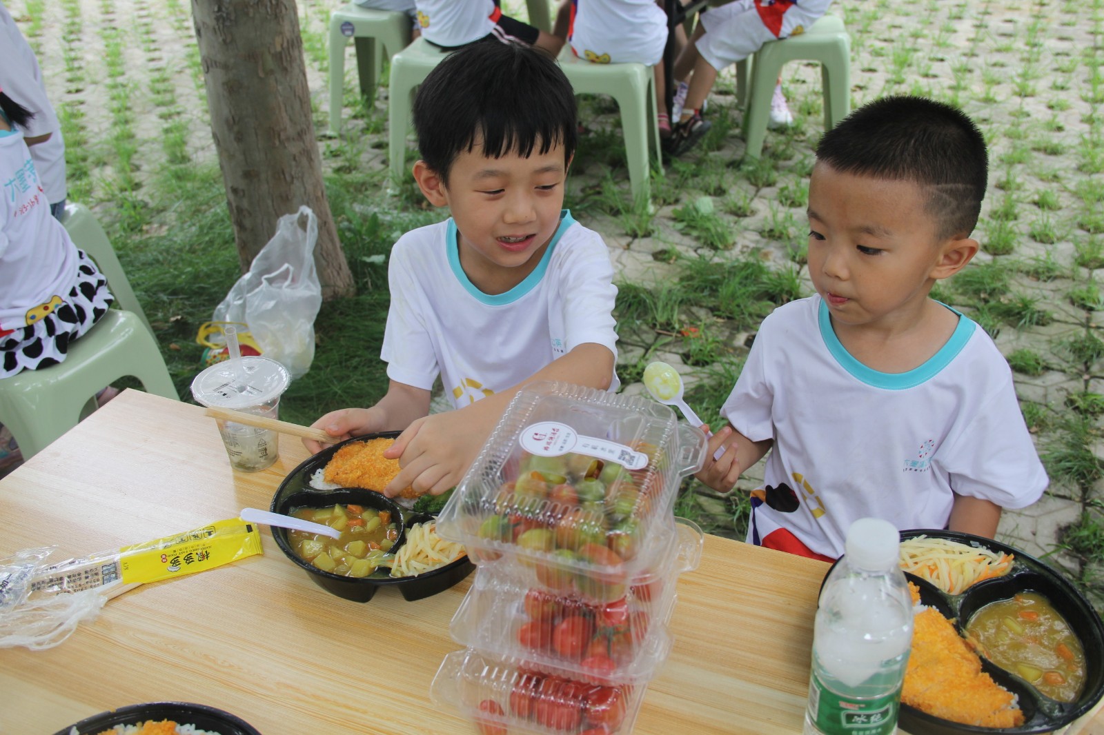工作人員提前為每個(gè)老師和孩子準(zhǔn)備了豐盛的午餐,在樹(shù)蔭之下分享著彼此辛苦采來(lái)的圣女果,享受著可口的飯菜,相信會(huì)給孩子們的心靈深處留下一塊的甜美的回憶。