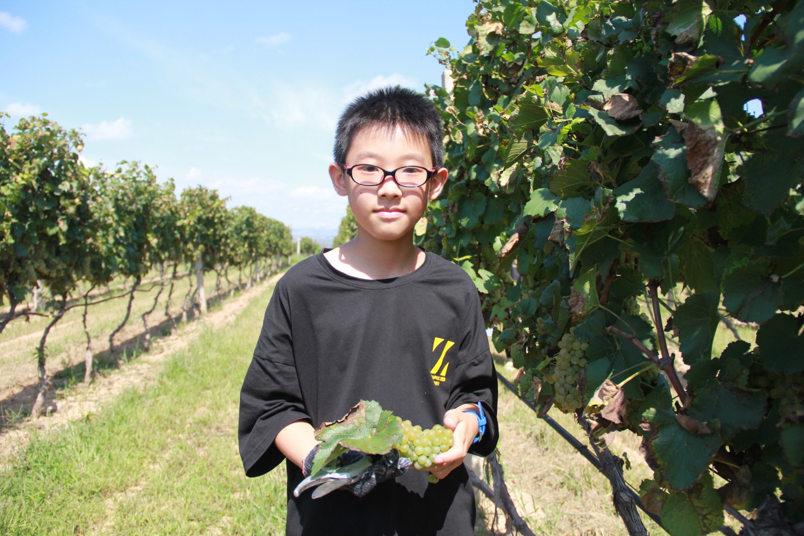 簽到完畢,所有人整裝待發。觀光車啟動的那一刻,孩子們按耐不住激動的心情,對接下來的葡萄體驗之旅充滿了期待!