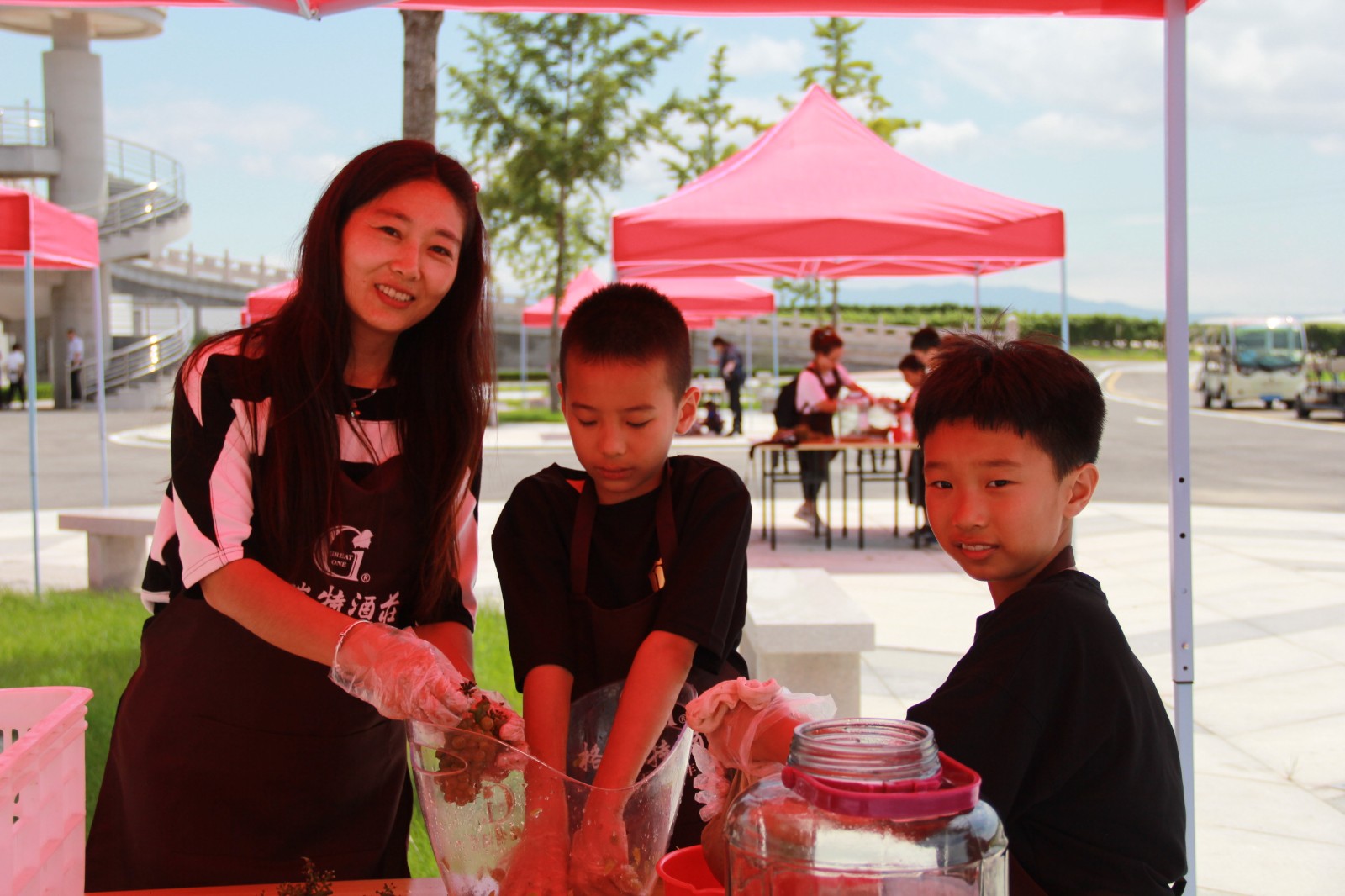 體驗釀酒:在酒莊專業人員的指導下,大、小朋友們親手將自己采摘的葡萄進行除梗—破碎—裝瓶。