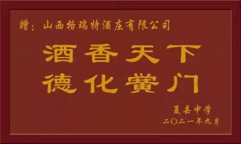 最后,山西格瑞特酒莊全體人員衷心的感謝夏縣中學為企業贈送的“酒香天下,德化黌門”牌匾。祝愿夏中越辦越好,今后能為地方乃至全國培養出更多德才兼備的人才。