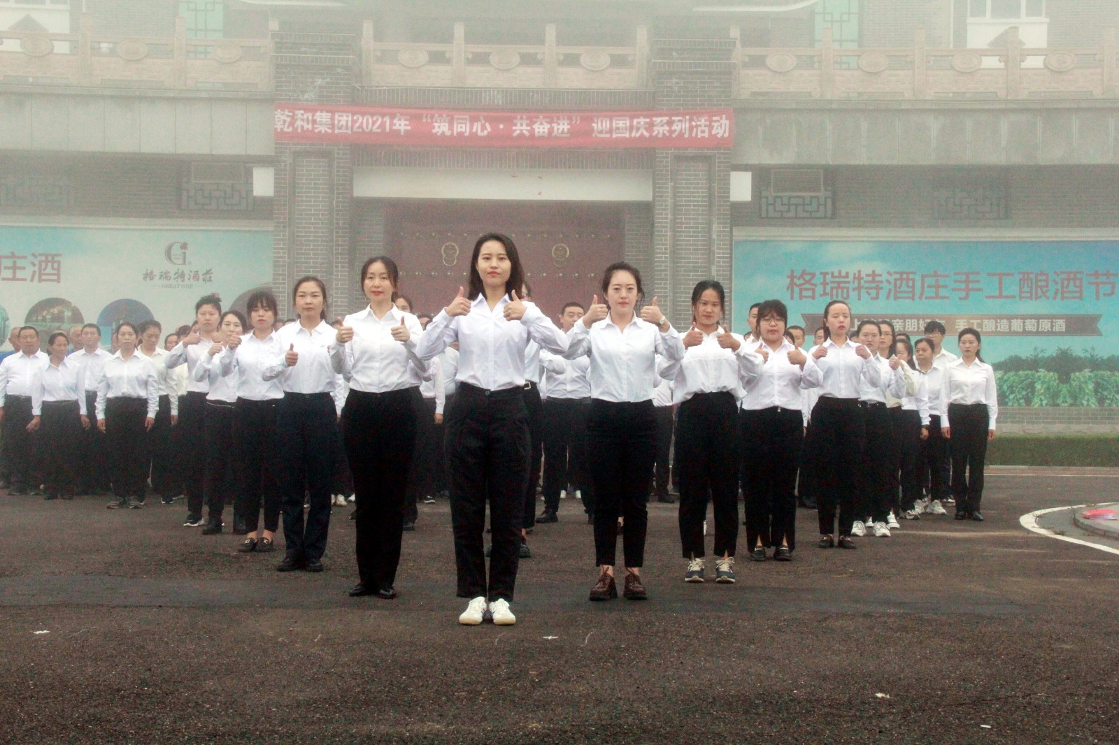 在國慶節(jié)來臨之際,為隆重?zé)崃业貞c祝中華人民共和國成立72周年,進(jìn)一步加強(qiáng)公司員工的團(tuán)隊(duì)凝聚力,弘揚(yáng)和培育民族精神,激發(fā)愛國主義情感,于9月30日早8點(diǎn)在格瑞特酒莊廣場開展“ 筑同心·共奮進(jìn) ”迎國慶系列活動。格瑞特莊園全體人員參加。